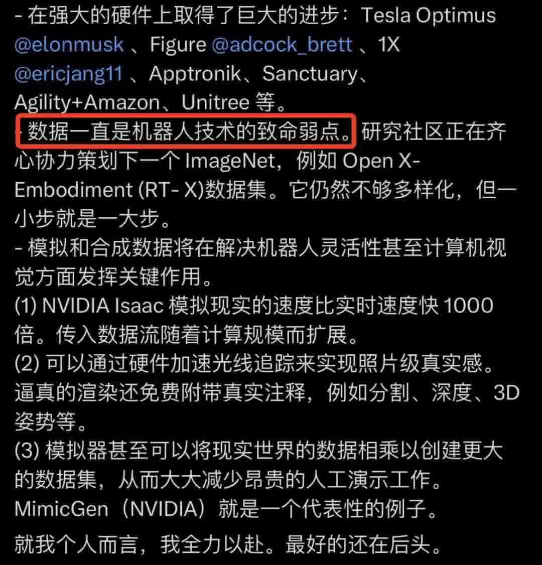 根据英伟达科学家 Jim Fan 的说法,数据一直是机器人技术的致命弱点。