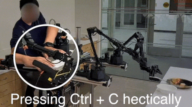 事实上, ALOHA 机器人并不是全自动的,而是自动 + 遥控的混合模式。