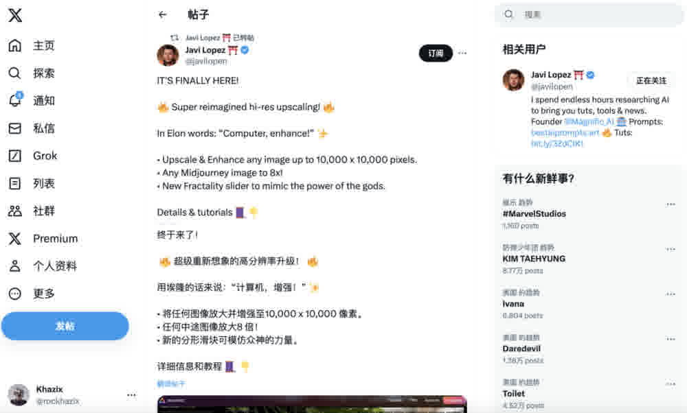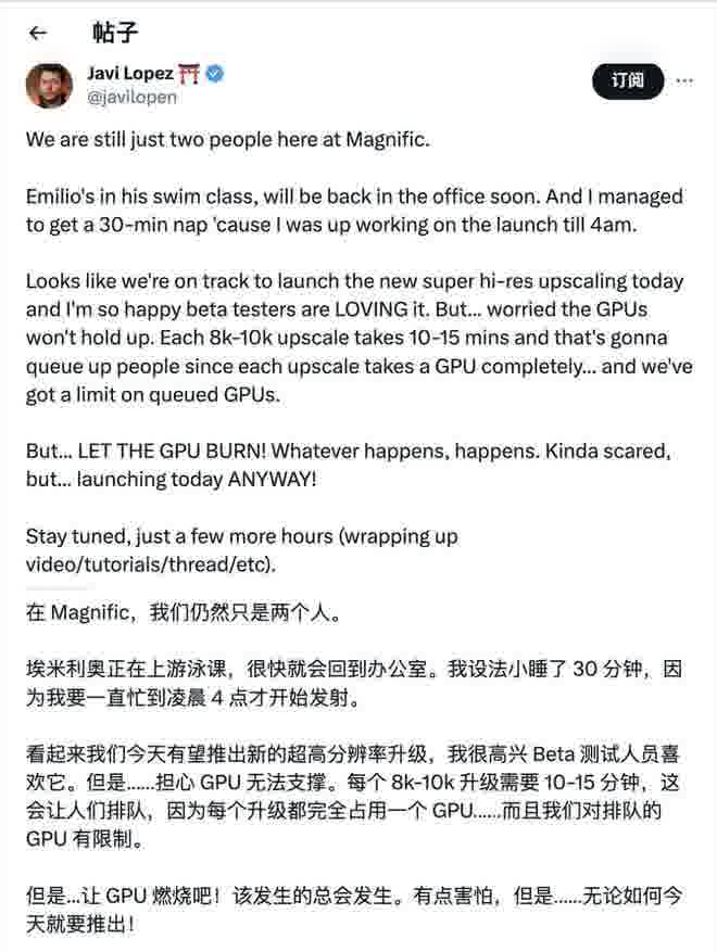 昨晚 Magnific AI 的创始人 Javi Lopez 发了一条帖子:
