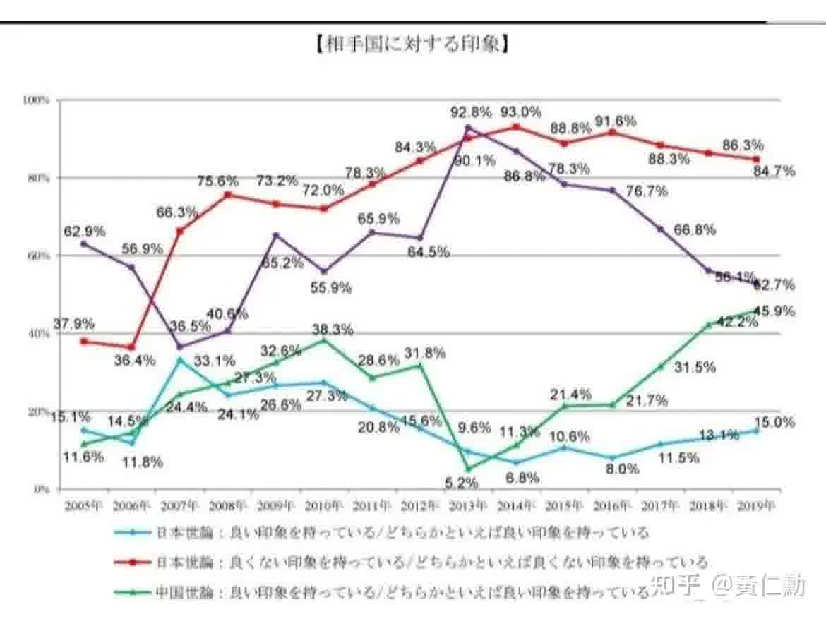 與之形成鮮明對比的,是日本民間從未緩和過的反華情緒,哪怕是在上世紀中日關係不似現在這般緊張的階段,日本也始終保持著七成以上的人口,對中國有著明顯的敵意。