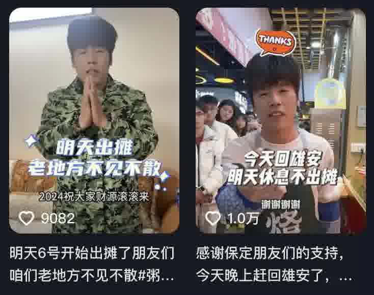 从 2023 年 9 月开始,关于粥饼伦的视频投稿开始井喷,保定市容城县晾马台乡粥饼伦摊位的队伍也越来越长,可他的生活节奏一直都没有改变,不是做饼,就是在做饼的路上。