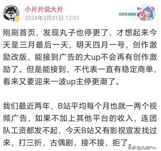 这两年大家都放弃了,主要也是发现自媒体的恶性竞争越来越过分,最后谁也不太赚钱。此外很多 UP 主根本就没有任何带货能力,他们的粉丝都是一群没有任何消费能力的人,而且极度反感商业化,评论区热火朝天,让花钱一哄而散,所以投资人心灰意冷都撤了,导致很多 UP 主关门了。