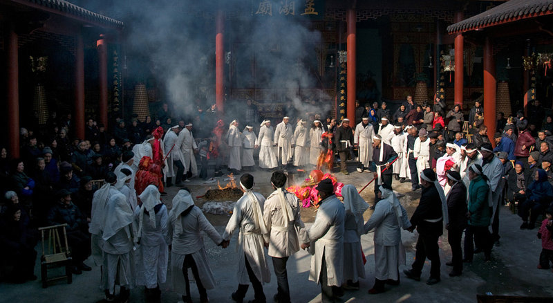 各种仪式结束之后,这白蛇般的长阵又原路返回了。暗夜里,一路哭声回荡,震得鸟雀惊飞。