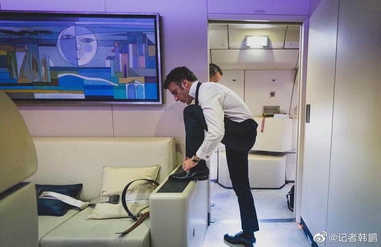马克龙在中国下飞机的大片
