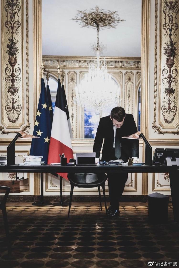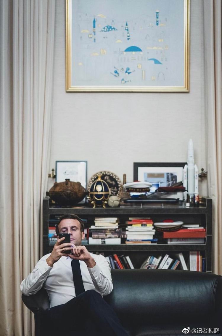 很多其他场合,比如马克龙在办公室独处、思考、发愁、用手机时,她也在。