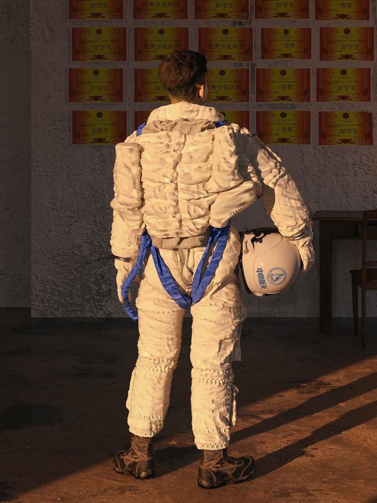 这两天网络疯狂刷屏的时候,我就在找照片的出处,想确认这真的是桂海潮本人吗?为什么可以穿宇航服回老家啊?感觉有点像消防员灭完火回家的样子。
