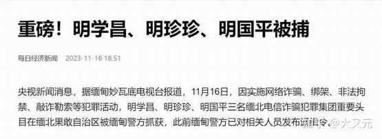 而同样是11月12日,中国一个市局公安的刑侦支队,发布了针对缅北四大家族明家的通缉令,结果就让所有中国人见识了,以前只在历史书上出现的传檄而定。