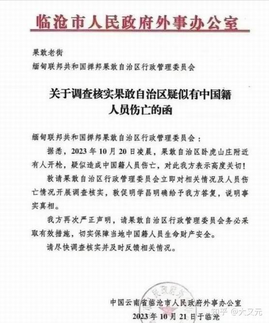 10月21日,临沧外事办发文,表示对事件高度关切,并点名明学昌给予答复。
