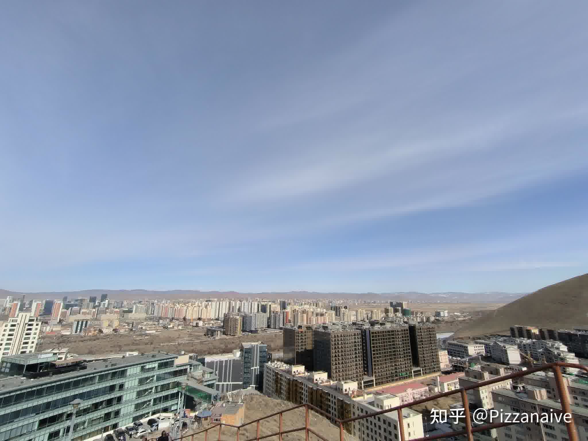 我一眼就看到了附近山上一片又一片的棚户区,有人问我乌兰巴托不是有很多高楼大厦吗?不好意思,有是有,但是当天雾霾太大看不到。