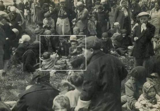 3、?1944年,一群刚刚被运至奥斯维辛集中营的犹太人,其中一个天真烂漫的孩子,正在送一朵花给另一个孩子,一片岁月静好的样子…