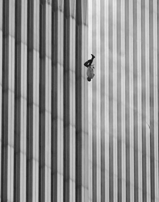 13、坠落的人?:911事件,一名男子从世贸北塔高层坠落…尚不清楚他是不小心摔了下来,还是为了躲避火灾和烟雾而跳楼,
