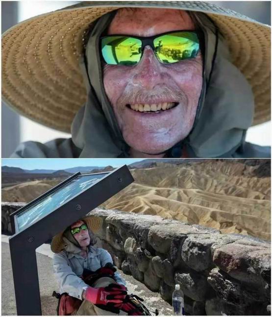 16、2023年7月,71岁史蒂夫·库里在蜷缩在美国死亡谷公园的解说牌乘凉,下午晚些时候,库里在前往洗手间的路上因为高温倒地。