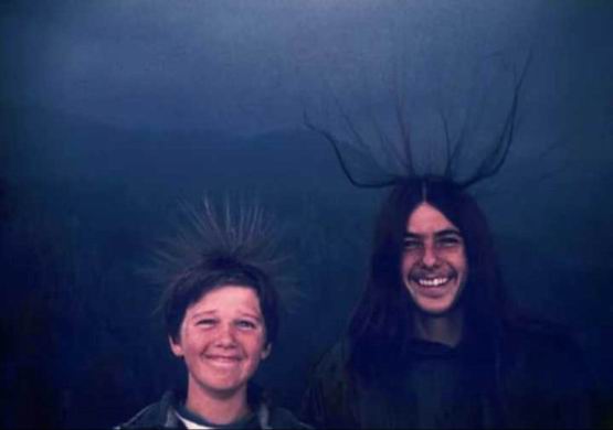 但不幸的是,他们不知道这是闪电的前兆,他们已经被雷神锁定…这张照片后来也被广泛用来警告雷击的危险。
