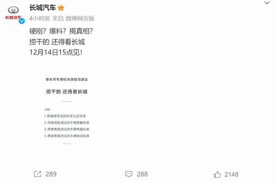 就像长城汽车在针对这次冬测发表的声明里写的那样: