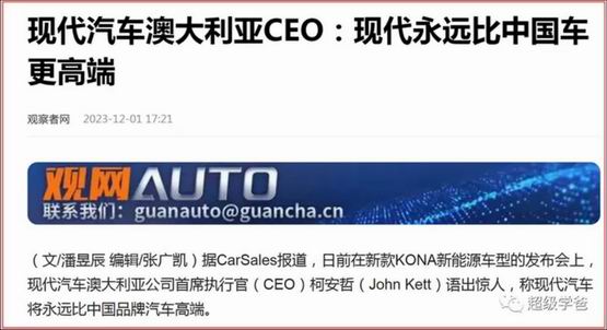 就在前几天,韩国还在吹牛皮。现代汽车澳大利亚公司的CEO柯安哲语出惊人,称现代汽车将永远比中国品牌汽车高端。这下好了,离了中国尿液就得趴窝。