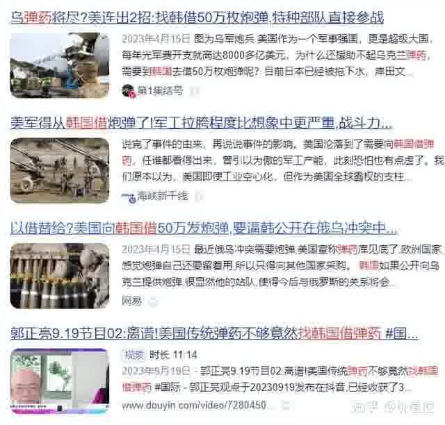 乌克兰打光了美欧陆军弹药库,产能不够,舍近求远,找小弟韩国借炮弹。