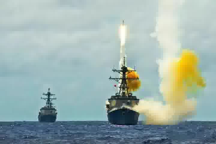 艾森豪威尔号附近的“拉邦”号(DDG-58)驱逐舰防空火力全部开启,艾森豪威尔号还起飞了F/A-18舰载机参与对来袭导弹和无人机的拦截。