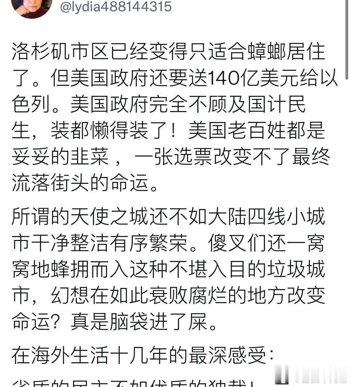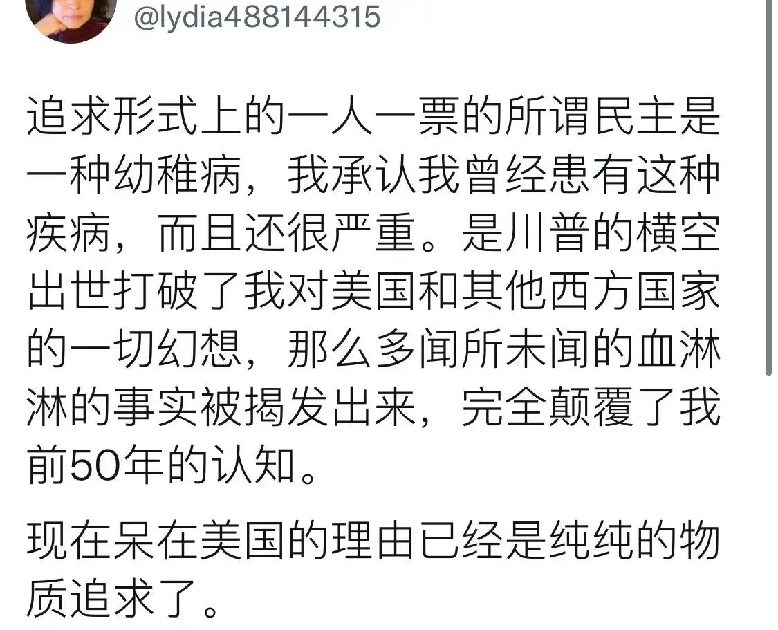 美国华人公知醒悟后,对美国的批判真是太狠了,而且很有说服力,看得出来她确实对美国彻底失望了,甚至是绝望!