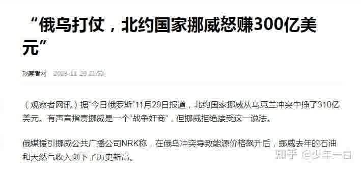 这仗打了两年,挪威从乌克兰冲突中总共挣了310亿美元。