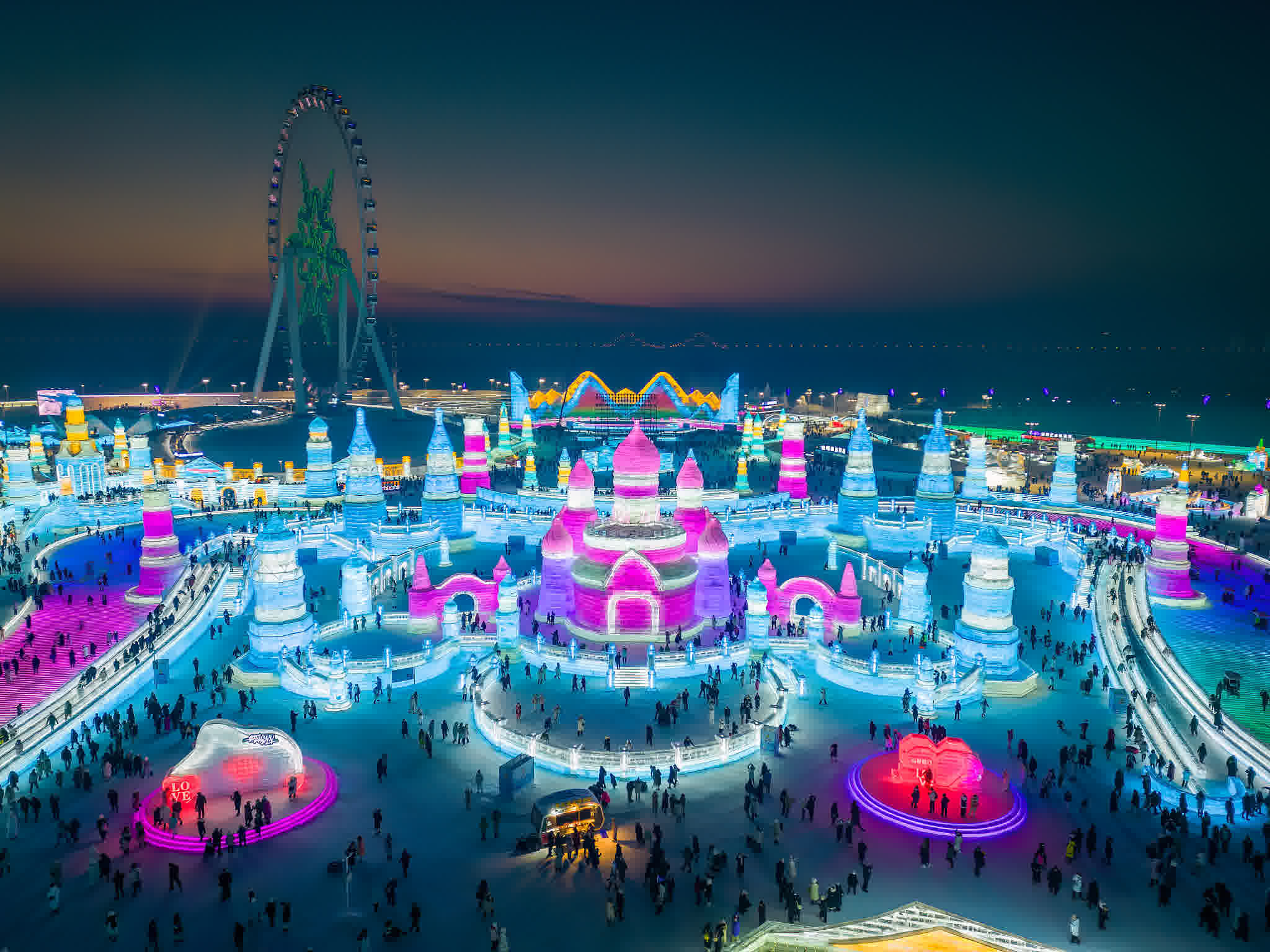 如今去哈尔滨,可以打卡的项目有很多,冰雪大世界是首选。当地旅游团告诉「市界」,今年哈尔滨冰雪大世界是有史以来最壮观,规模最大的,光是占地面积就有 81 万平方米。要知道,北京故宫才只有 72 万平方米。