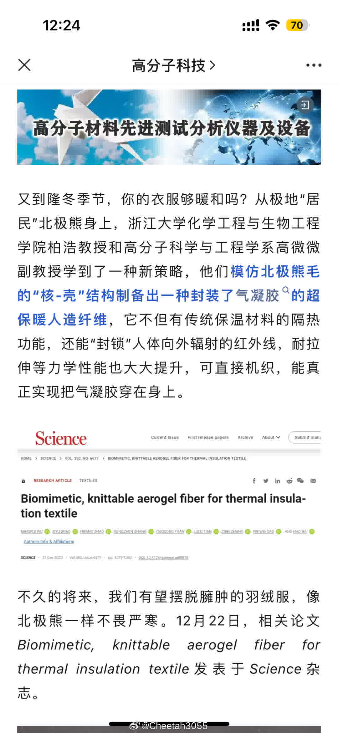 浙江大学的研究人员搞了个厉害的超保暖人造纤维