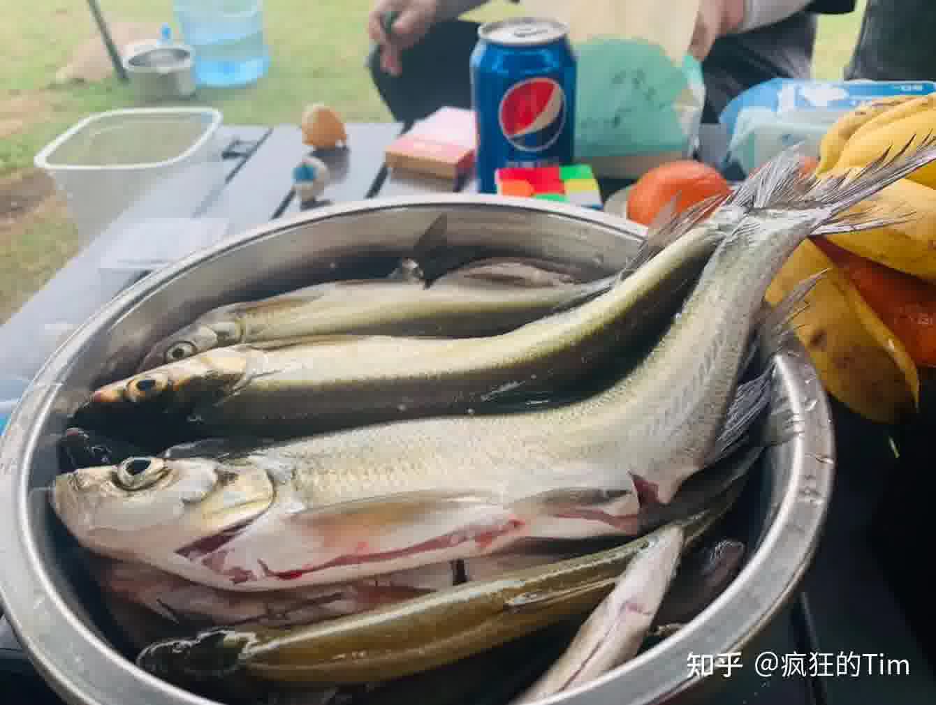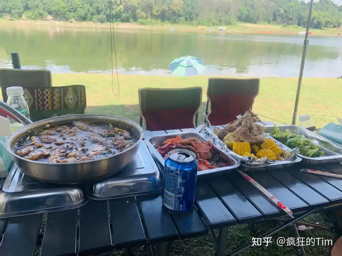 前面的伞就是我的钓位,锅里是刚出水的筷子长的小翘嘴;在营地可以连浮漂是否有下顿都能看清楚,这种感觉太好了