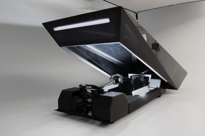 因为它根本没有车门,想进去就得使用配套遥控器,直接让整个外壳升起~