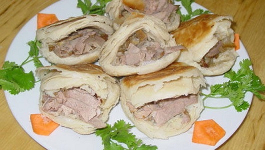 熏肉是熏猪肉,油水大,而且料放得足,味道特别重,很合牧民口味,但跟哈达烧饼配不起来。哈达烧饼是把两面死死压在一起,讲究个瓷实,拿刀剖口塞肉,就把意思完全弄拧了。于是苏文玉重新把驴肉火烧捡了起来,取其酥皮工艺,来代替哈达烧饼的死面疙瘩。
