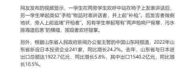 捅黑刀子也就算了,完了还要在报道中强调一嘴日资企业给山东的经济发展作出了多少多少贡献,并且还强调自己援引的是“山东省人民政府新闻办公室主管的中国山东网”的数据。冲学生使坏还拿政府来当挡箭牌,主打的就是一个攻防一体,你不服都不行。你说咱中国的媒体有这本事怎么就不见用在外宣上呢?