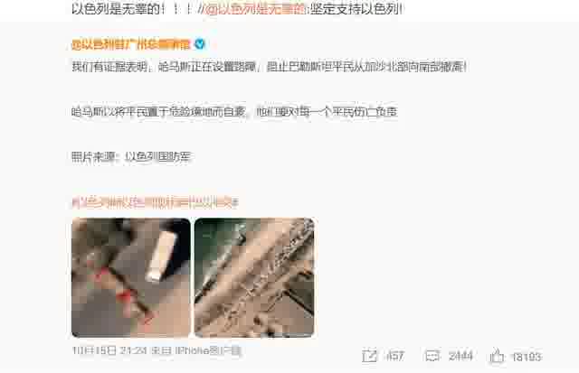 无论是文字还是配图,乍看之下以色列驻广州总领事馆的这番操作似乎并没有什么值得大惊小怪的。你要说带节奏给哈马斯扣屎盆子吧,人家本来就是以色列的驻华外事机构,在这种节骨眼上把胳膊肘往里拐那是正常的。这事轮不到我们中国人说支持还是不支持,但我想大家应该都能理解。