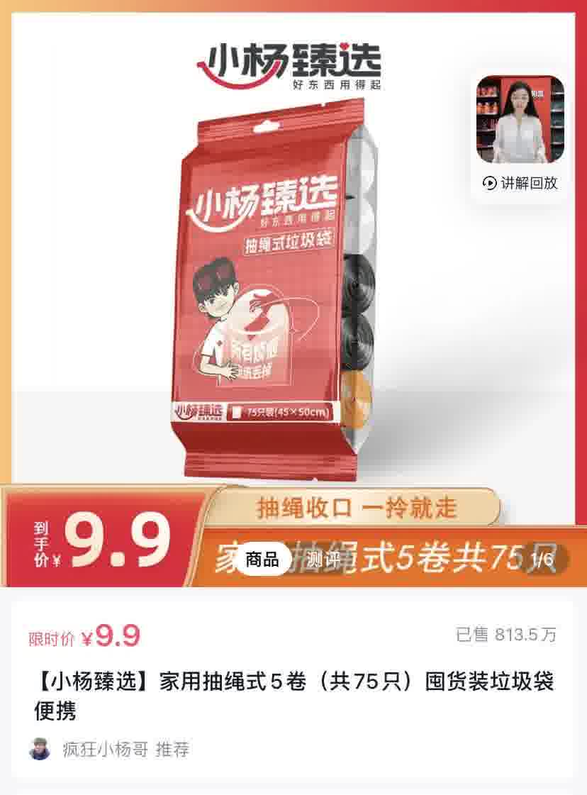 9 块 9 的小杨甄选垃圾袋一度售出超过 800 万单