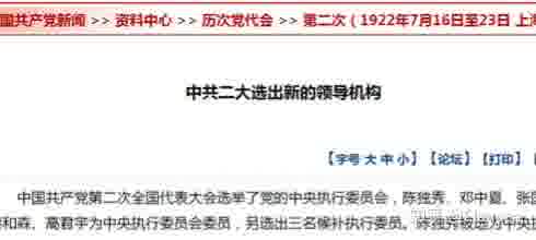 1922年二届中执委,五名成员分别是陈独秀、张国焘(组织工作)、蔡和森(宣传工作)、高君宇、邓中夏。