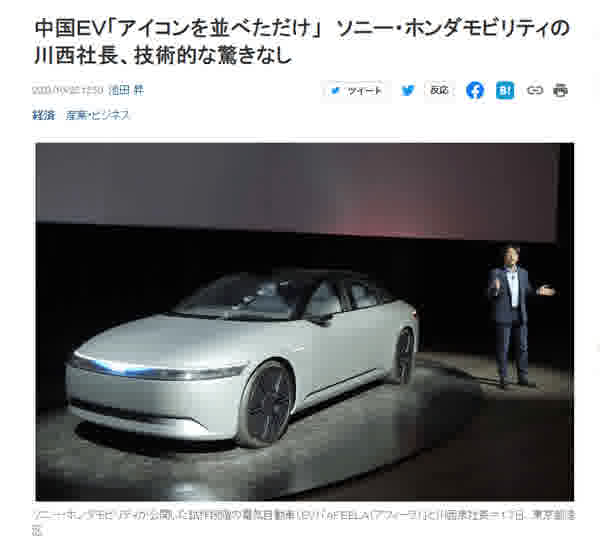 索尼本田社长长川西泉的原话是: “中国电动汽车制造商发展速度’有势头‘,但信息技术方面,只是排列智能手机图标,目前没有技术惊喜。”