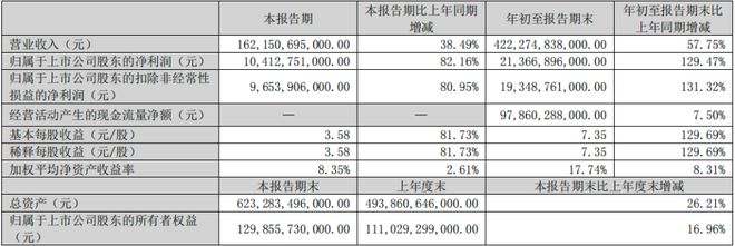 昨晚,比亚迪发布三季度财报,财报显示,其第三季度营收 1621.51 亿元,同比增长 38.49%;第三季度净利润 104.13 亿元,同比增长 82.16%。