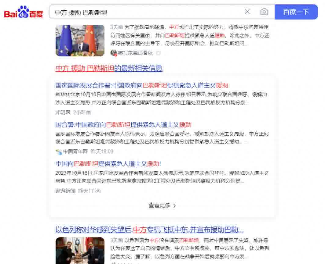 而这也是比较罕见的,当我在外网上查找相关资料的时候,西方那一套议程设置不会给我推荐太多乱七八糟的简中假新闻的关键词组合。也许,就连这帮终日都琢磨着怎么带我们节奏的家伙也不得不暗自承认,在对巴援助这道人道主义的大命题上,在中国的初心不变和砥砺前行面前,他们也确实是找不到太多可以拿来抹黑我们的抓手了。
