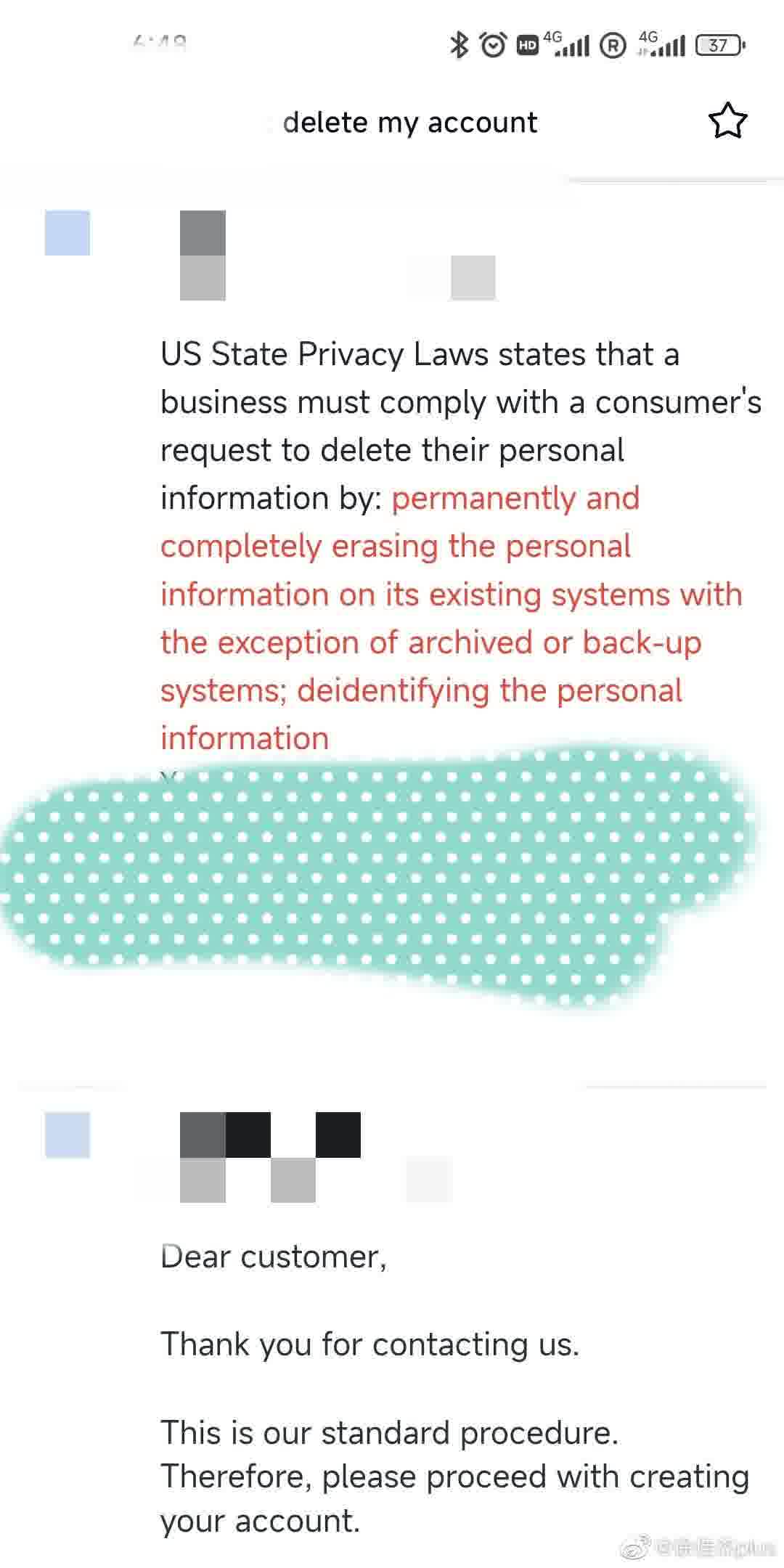 无奈之下,我只能搬出 US PRIVACY LAW(美国的隐私法,具体内容看图一),跟他掰扯,暗示你们给用户注销设置障碍,是违法行为。