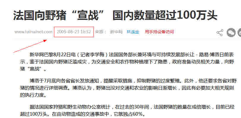 而法国在2009年就有100万头野猪,并声称向野猪宣战。