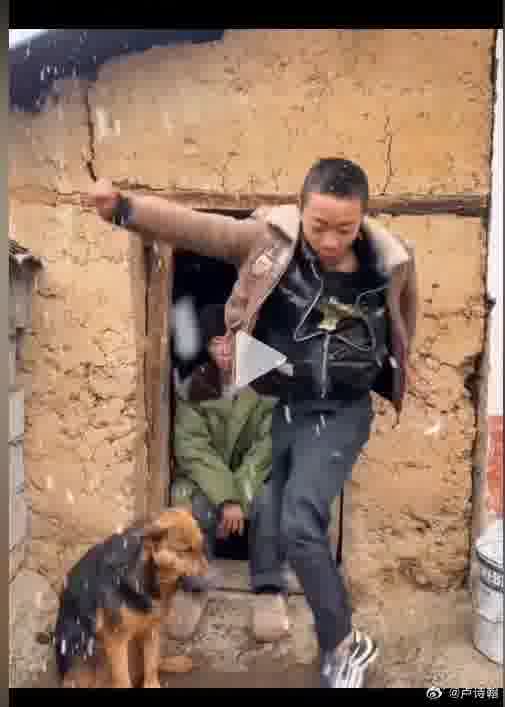 有一个叫小哈哈的网红,三年前作为精神小伙一员,在泥土屋前跟风跳鬼步舞。