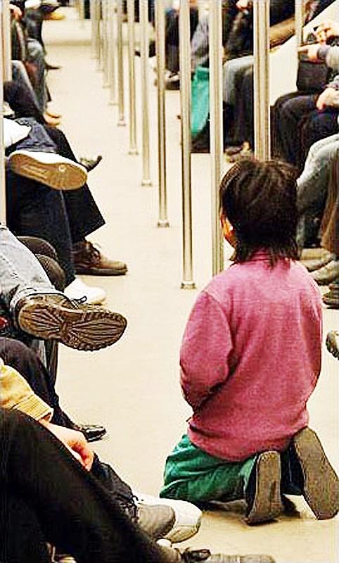 列车长继续朝座位底下喊,“出来,出来!”我看见三个小女孩从座位底下爬了出来。和车厢里坐着的妇女一样,三个孩子脏兮兮的,衣衫褴褛。
