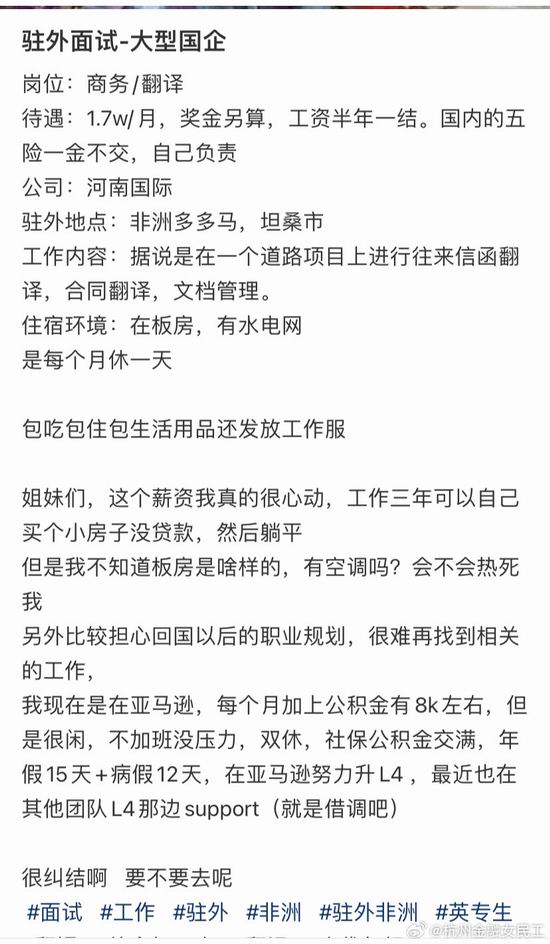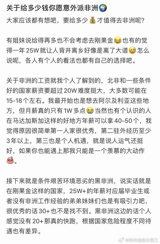 @杭州金融女民工:#年薪 20 万你会考虑外派非洲吗#