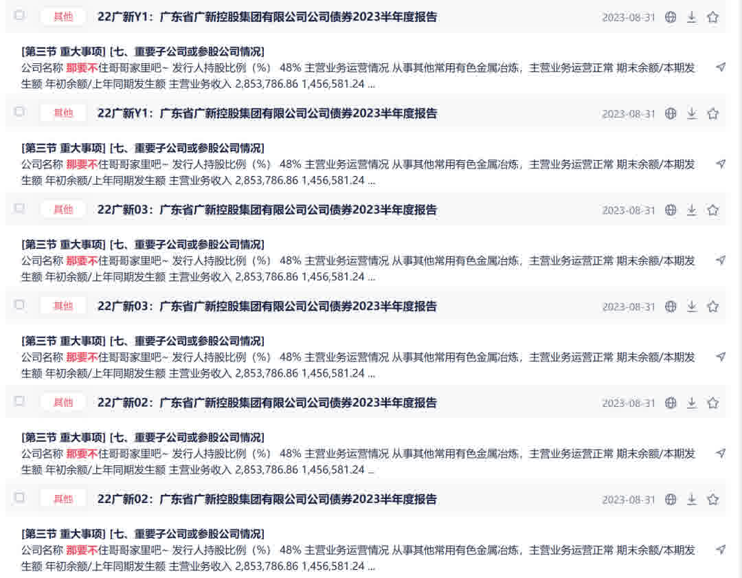 21 广新 01 债披露的半年报显示,广东广新控股旗下一子公司或参股公司名称为 “那要不住哥哥家里吧”。
