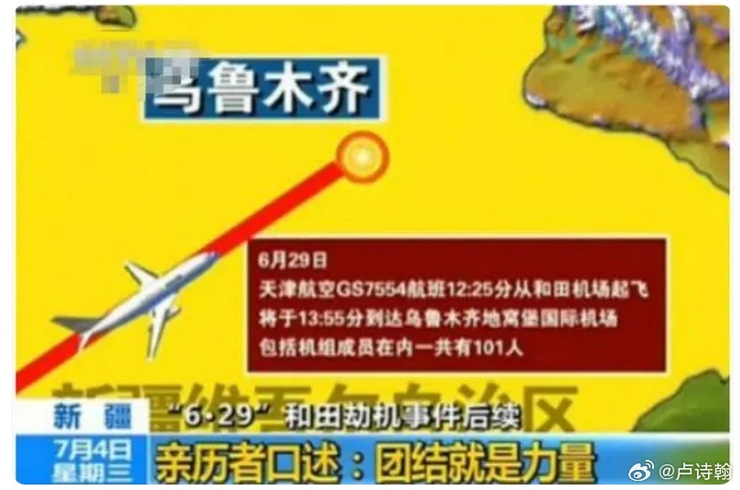而 629 劫机案,就发生在新疆和田到乌鲁木齐的航班上~