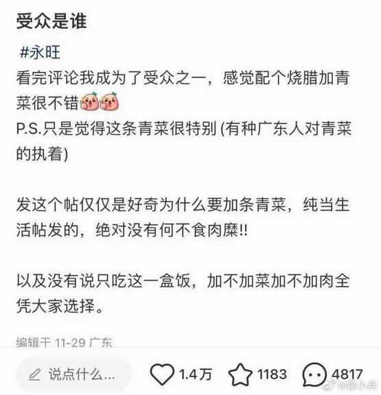 发帖人好奇地问:“这种盒饭的受众到底是谁?”