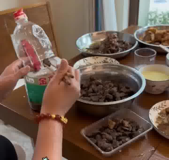 没想到当天晚上,他母亲就把垃圾袋里的炸虾捡了出来,剥去虾壳,把虾肉剁碎拌了馅儿,然后拎着馅儿去他姥姥家包了顿饺子。