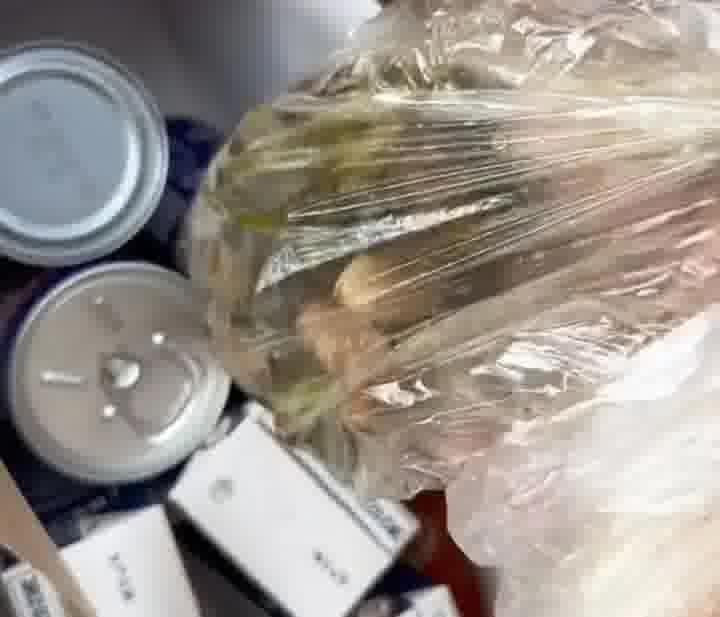 一大堆行李包括啥呢?吃剩的菜、没喝完的饮料、卫生纸、甚至连扫把都要绑在身上带回去。