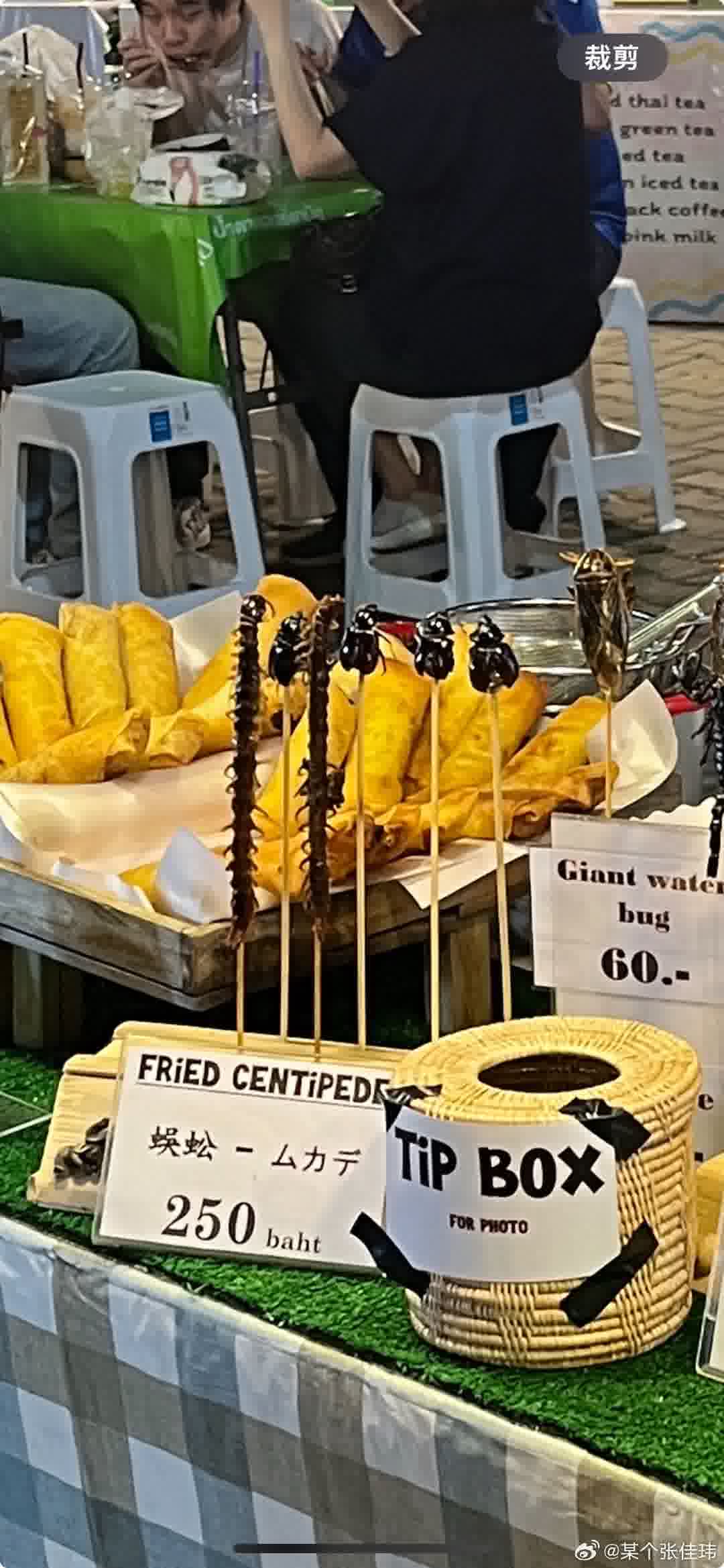 在清迈夜市看到炸蜈蚣,想到《神雕侠侣》里,洪七公华山绝顶请杨过吃炸蜈蚣,“满嘴鲜美,又脆又香,清甜甘浓”,想得试一试。