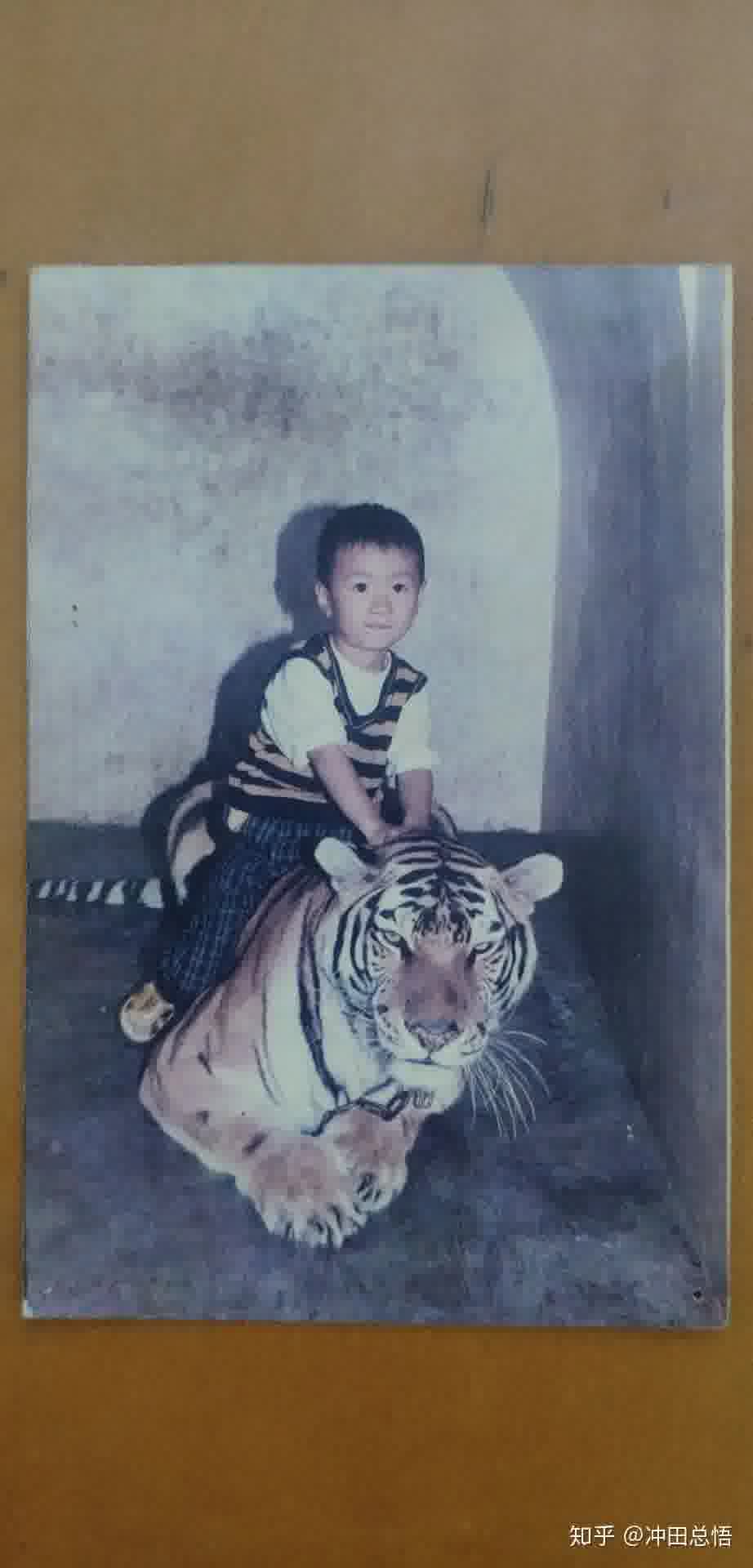 她觉得很有趣,想让我也去骑骑看,那时候我还小啥也不知道,也不知道怕,就去骑了。骑在老虎身上威风凛凛的,我还记得挺开心。
