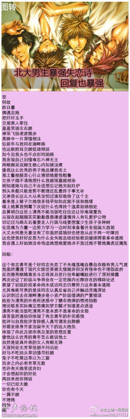 北大男生暴强失恋诗 谁敢说北大没有才子?