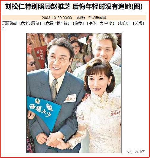 2003年,49岁的赵雅芝再次全面复出,与54岁的刘松仁在《西关大少》中饰演夫妻,忆起往昔,刘松仁还为错失美人追悔莫及。
