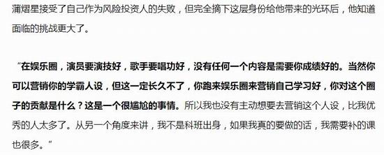 一方面,演艺圈不需要学习成绩好,营销学霸人设对艺人是个有点尴尬的事。